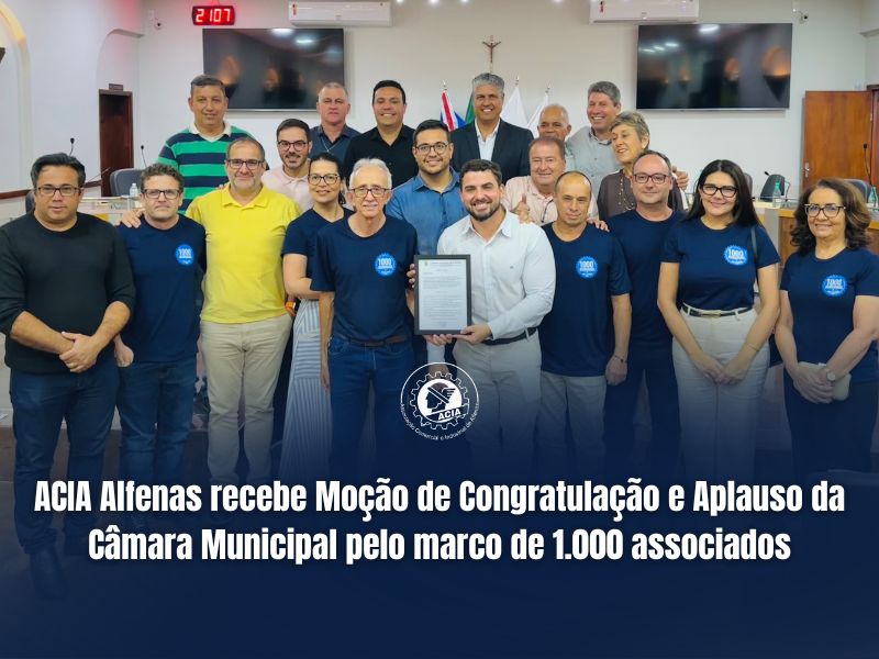 Na noite desta segunda-feira (15), a Associação Comercial e Industrial de Alfenas (ACIA) foi homenageada pela Câmara Municipal com uma Moção de Congratulação e Aplauso pelo importante marco de atingir 1.000 associados ativos.