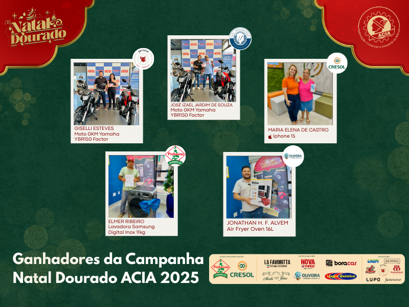 ACIA divulga os ganhadores da Campanha Natal Dourado 2025
