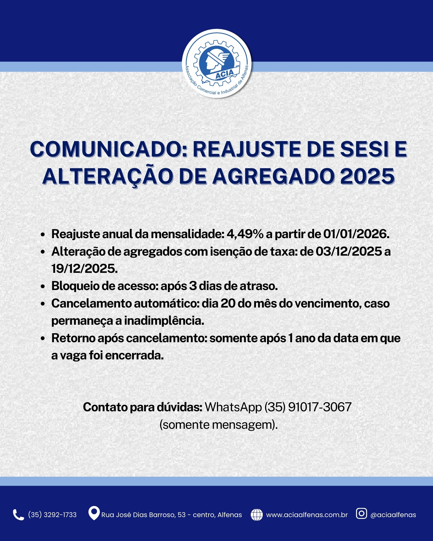 COMUNICADO: Reajuste de SESI e Alteração de Agregado 2025